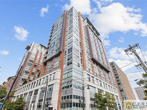 Impeccably maintained & spacious 1 Bedroom condo in a luxury high rise perfectly located for your commute. Recently renovated kitchen with quartz counter top and breakfast bar, stainless steel Bosch refrigerator & range oven appliances, stainless steel microwave & dishwasher. Hardwood floors in kitchen, living room and bedroom. Bosch Washer & Dryer. Abundant closet space. Includes a deeded parking space. Conveniently located with light rail right outside the building and also minutes to Path train, restaurants & shopping. Amenities include 24 hour concierge, fitness center, 2 courtyards, club room & playroom.
