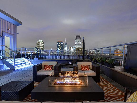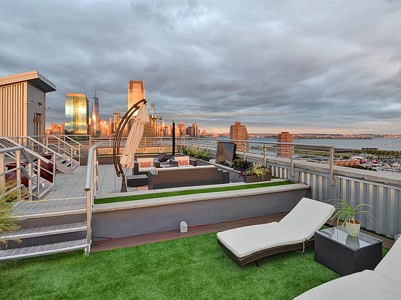 **SOLD** Penthouse 8. One of the largest penthouses on the Hudson River waterfront. An expansive 2100 sqft, 3 bedroom, 2 bathroom, corner home with desirable Southeastern and Southwestern exposure through floor to ceiling windows boasting panoramic views of NYC, the Hudson River, Statue of Liberty, Verrazano Bridge, Liberty State Park and Marina. A loft feel with open floorplan, large skylight and soaring 11 ft ceilings. Enjoy your own private oasis, a fully landscaped, professionally designed, 1800 sqft private rooftop with distinct areas for dining, lounging and entertaining. All this perched atop a premiere luxury building w/concierge, on-site super, gym, and common courtyard. Conveniently located within steps of lightrail, PATH train and ferry. Includes 2 garage parking spots.