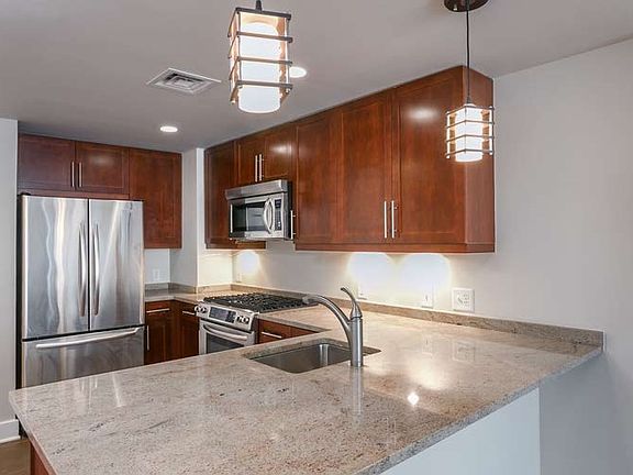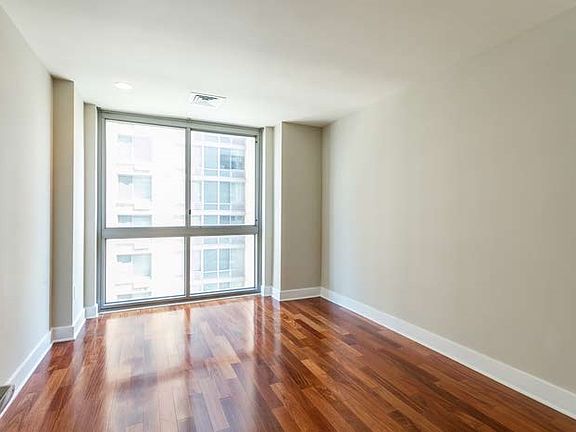 Pet friendly one bedroom in fantastic building with all the extras you could want. Central heating and cooling, gas cooking, washer dryer, floor to ceiling windows, parking for $150. Internet, Basic Cable & Cooking gas are included in rent. In PS16 School district. Fee paid by landlord on a 2 year lease starting ASAP.