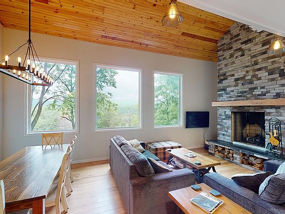 Stunning and Fully Furnished 4BD/2.5BA Home on 5.01 Acres in Lost River, boasting breathtaking mountain views. This recently renovated property offers a modern aesthetic with luxurious finishes, exquisite lighting, and upscale hardware. Move-in ready, it's perfect for full-time living, weekend getaways, or hosting family and friends. The architectural renovation includes a thoughtfully designed addition that houses the staircase, foyer, and additional storage, creating an open and spacious living area. Stay connected with high-speed fiber optic internet, making teleworking a breeze and ensuring you can enjoy all your favorite streaming services. The property's versatility shines through, as it has been utilized both as a cherished weekend residence and a successful Airbnb. Step inside to discover the interior amenities that will captivate you. The open living and dining space features vaulted ceilings, beautiful wood floors, and a charming stone fireplace. The updated kitchen boasts stainless steel appliances, a generous marble dining island with ample storage, and large windows that flood the space with natural light and provide stunning views of the back deck. Indulge in luxury in the updated bathrooms, complete with heated tile flooring, marble vanity countertops, double vanity sinks, and a relaxing soaking tub in the primary bathroom. The walk-in showers feature tempered glass doors, adding a touch of elegance. Outdoor living is a delight with a screened porch and a sun deck, expanding the available space for relaxation and outdoor activities. Keep your yard tidy with the convenient 10x12 storage shed. The front yard's gentle slope makes it a perfect spot for winter sledding adventures. This exceptional property is conveniently located just minutes away from Trout Pond National Recreation Area, offering opportunities for swimming, hiking, fishing, and camping. Lost River State Park is also nearby, featuring additional hiking trails, a spring-fed swimming pool, cabins, pavilions, and more. Commuting from the DMV area is a breeze, as it's only a two-hour drive. Enjoy the charm of the Lost River Valley and explore the delightful dining and shopping options in Lost River,  and nearby towns of Wardensville and Mathias. Experience the pinnacle of comfort, style, and natural beauty in this remarkable Lost River home. Don't miss the opportunity to make it yours!  CLICK ON LINK TO SEE 360 TOUR.