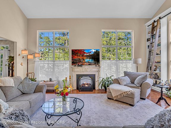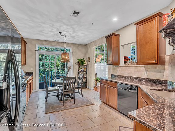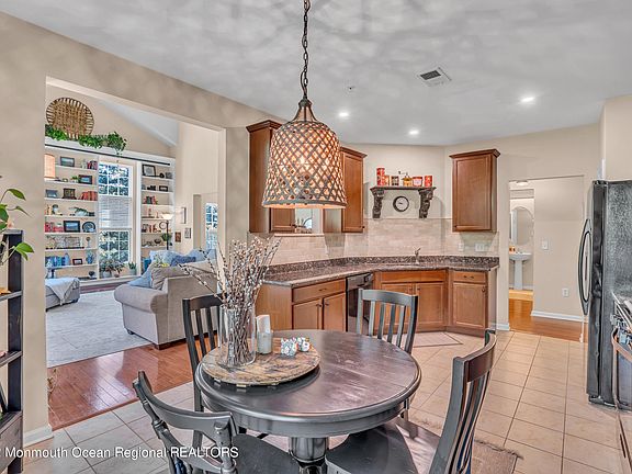 Striking condo with tons of storage close to Long Beach Island. It is all in the details, details that include a light filled living room with a vaulted 2 story ceiling, huge 9ft windows, stunning custom craftman built bookshelves and ladder, wood floors, and view of the woods. The eat in kitchen has 41-inch cabinets, rustic backsplash, granite counters, pantry, and a deck off the dining area. The primary bedroom, with bathroom and walk in closet is on the main level, along with half bath. There are 2 spacious bedrooms, a full bath, laundry, and more closets. The complex has a swimming pool, walking paths and a playground. This 3 bedroom, 2.5 bath 2350 sq ft Demarest model is adjacent to shopping, close to the Garden State parkway and just a few miles to Long Beach Island. Call today!!