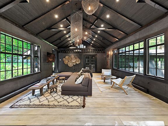 Discover tranquility at this one-of-a-kind mini estate set on nearly 4 acres, where natural beauty meets refined living. The property features three distinct structures, each thoughtfully renovated to offer comfort and flexibility in a breathtaking woodland setting. The original Saw Mill House is perched over a brook fed by a dramatic 65-foot waterfall. Inside, soaring cathedral ceilings and polished finishes create a striking sense of space. This residence offers a flexible layout with one bedroom, a bonus sleeping loft, full bath, kitchen, and dining area. Step outside to the private deck, where a propane-fed fire pit creates the perfect spot to gather with family and friends year-round. Nestled beside the waterfall, the Cottage provides a private one-bedroom suite complete with a spacious walk-in closet, its own kitchen, and full bath-ideal for guests or extended stays. The Carriage House offers even more versatility, with a bright home office on the upper level and an artist's studio on the lower level. Meandering walkways, multiple decks, and a gazebo invite you to fully immerse yourself in the serene surroundings. All three dwellings combine for the total square footage and are offered together as one parcel-an exceptional opportunity to experience luxury living in harmony with nature.