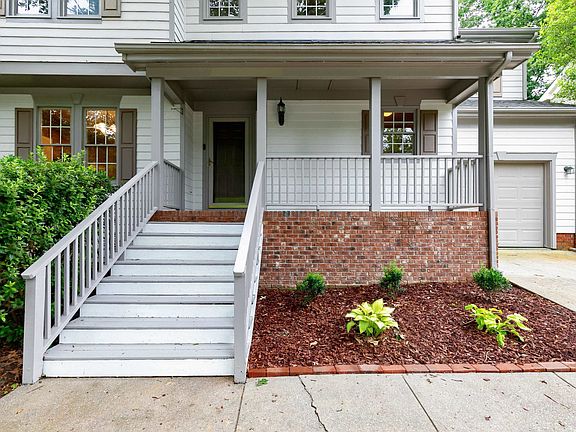 Location! Your Park Village home awaits! Great opportunity to get into one of the most desireable neighborhoods in Cary for under $450K! Brand NEW rocking chair front porch welcomes you home! Walk in to the nice sized kitchen, generous size living room (cathedral ceiling and fireplace) and dining room. Laundry room on main level. Up the stairs to Primary Bedroom, Walk In Closet with Custom Cabinetry, Double Vanity in bath and 2 Secondary Bedrooms. Brand NEW Carpet. Double vanity in bath. Hallway separates primary from the secondary bedrooms. CORNER lot with backyard deck off of the dining area. Amenities include POOL, CLUBHOUSE and WALKING TRAILS! Close to EVERYTHING - Schools, Davis Drive Park, 64, 540, Downtown Apex, Grocery Stores and more!