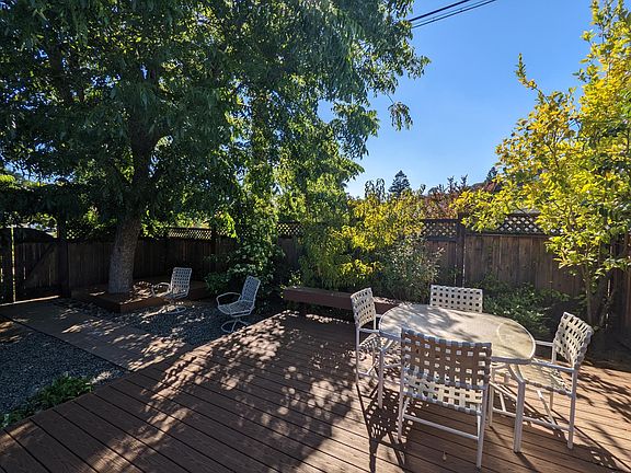 2. Beautifully maintained landscape. Private yard from master suite with an expansive deck and mature fruit trees. Both the backyard and the side yard are equipped with outdoor furniture.