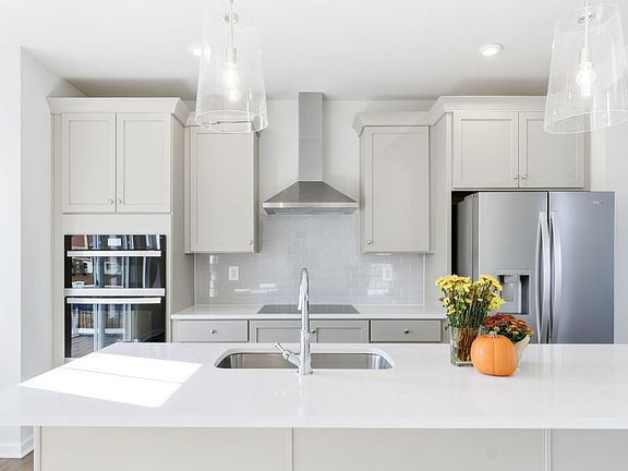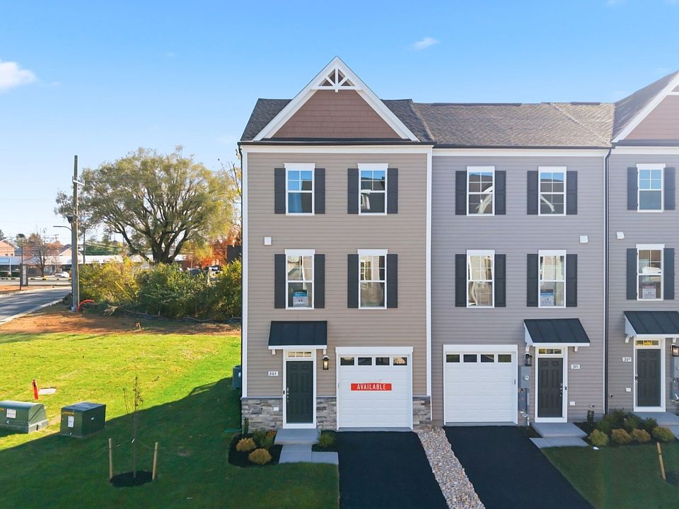 OPEN HOUSE: Saturday - Sunday 1pm - 3pm End Of Row Townhome With 1 Car Garage & Rear Deck! MOVE-IN READY! The Bedford II 3 level with 1 car garage featuring 3 Bedrooms and 3.5 Baths and 1,658 square feet. The front door with the electronic Smart Home Technology package leads directly into the spacious lower-level recreation room with 9 ft. ceilings. The foyer with luxury vinyl plank, a double coat closet, door access from the garage continues into the fully finished lower-level recreation room with full bath that includes a walk-in shower and walkout access door to rear yard with privacy fencing on both sides. There are Oak hardwood stairs with Open stair rails from the 1st floor to the 2nd floor which lead to the open concept main level living also with 9 ft. ceilings, luxury vinyl plank flooring throughout this level with dining room, half bath and kitchen. There is a gourmet kitchen with stainless appliances that include an upgraded 2 door French door refrigerator, a stainless gourmet cooktop, a wall oven and a built in microwave, large 8' plus island, upgraded Mission style Willow (taupe) cabinets with crown molding, upgraded quartz countertops with a decorative backsplash and an oversized single bowl stainless steel sink, upgraded satin nickel hardware for cabinets and upgraded pendant lights above the island. There is a box bay window at the rear that leads to a maintenance free 10 x 14 deck. The kitchen has a separate pantry with door. The kitchen leads directly into l