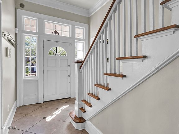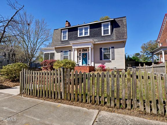 Recently, Southern Living Magazine named Wilmington, NC at the top of their ''South's Best Cities on the Rise.'' This charming Dutch Colonial on sidewalk and tree-lined streets offers an opportunity to enjoy an oasis near all that the city has to offer - professional pursuits, entertainment, recreation, the arts, cultural celebrations, and academics. Constructed in 1930 on approximately ⅕ of an acre corner lot, the ceilings rise from the original hardwood floors to 10' on the first floor and are accented by wide crown molding and baseboard trim. The Living Room on the first floor, and the Primary Bedroom above it on the second floor extend the full length of the home, carving out large living spaces. On the first level is a formal dining room, a laundry closet outfitted with new washer and dryer that will convey, a full bath, a half bath, as well as a kitchen that was updated a few years ago. A new Architectural Shingle roof is being installed 3/2024 and the HVAC was replaced in 2016. The screened porch, rear deck, and second level balcony off Bedroom #3 all extend living areas. The fenced in backyard provides a private retreat, a fire pit for enjoying cool evenings, as well as space off the rear alley for off street parking for 2 vehicles. Extra storage is provided in a large closet off the kitchen, as well as a stand alone shed at the rear of the property. According to the Current Land Development Code (see attachment) an Accessory Dwelling Unit should be allowable at the rear of the property. The surrounding beautiful downtown area, the Brooklyn Arts Center, the newly developed Soda Pop District, the seasonal Farmer's Market, the Wilson Center, Thalian Hall, the many music venues, the extensive restaurant choices, or the offerings of the Cape Fear Community College, create a vibrant setting for this home. Location provides easy access to highways and nearby airport. For offers, contact Listing Agent for Seller's Relocation Agency procedure.
