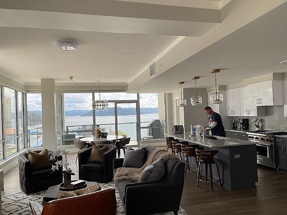 2 Bed 2 Bath 8th floor 1,554 square foot beautifully furnished condo at One Lakeside downtown CdA. Southern exposure with outstanding lake views. Club Level nestled on the rooftop of the 15 story building includes an indoor and outdoor lounge, workout facility, meeting room, cooking areas, hot tub, designated garage parking, and other amenities. An easy walk to parks, the lake, dining, entertainment, and all that downtown has to offer. $5,600/month plus $10,000 deposit. Available April 21st.