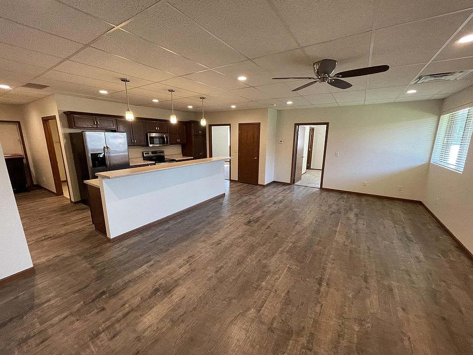 Completely remodeled 2 bed 2 bath duplex located in a quiet neighborhood. This unit features all new flooring, fixtures, bathrooms and kitchen. Large family room, breakfast bar, washer dryer hookups, walk in closets! Tenants pay all utilities, lawn and snow included with rent.