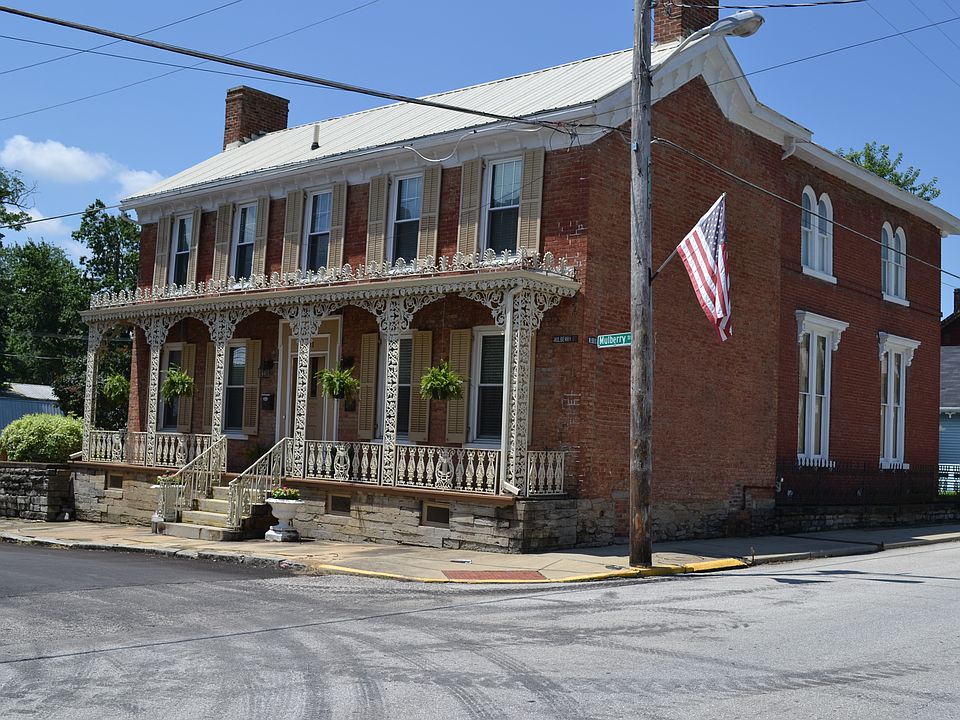 Two story historic brick home with 5 bedrooms, 2.5 baths, 9 fireplaces, huge ballroom, dining room, library, master suite and second floor balcony with a view of the Ohio River. Two car detached garage with beautiful English style gardens.