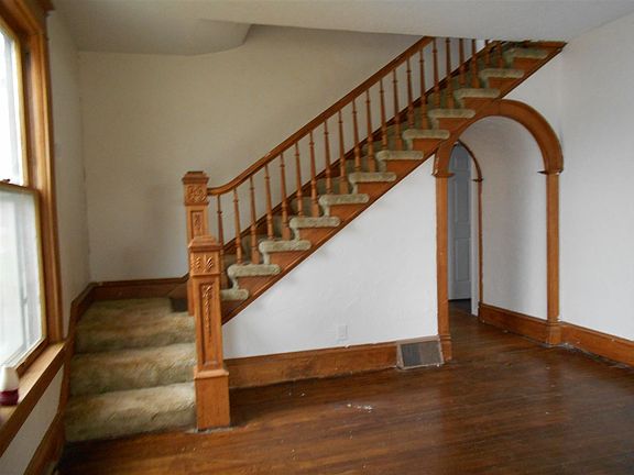Enjoy the comforts of small town living in this sturdy four bedroom, two story Victorian style home located on a corner lot. Downstairs features a large parlor, living room, and traditional style dining room with large bay window off the kitchen. Laundry room and half bath are on the ground level. The large bedrooms are located upstairs along with a full-size bathroom with an original claw foot tub. The attic has ample storage space or could be finished into a large room.