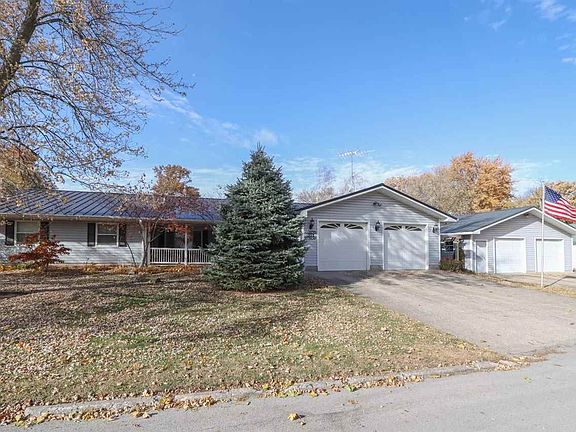 Beautifully landscaped, spacious ranch-style home on a .33 acre corner lot with many nice amenities! Enter the home from the covered front porch. The entry has a large closet for storing coats, boots & loads of other necessities. The renovated kitchen has an abundance of beautiful (Bertch) cabinetry with granite countertops. LVP flooring installed in kitchen and dining areas. Near the kitchen, the glass slider opens onto a spacious deck. Off of the kitchen is a dining area that looks outside past the covered porch to the park across the street. The hallway leading off of the kitchen/dining area leads to the master bedroom & two nice-sized bedrooms. Nestled amidst the bedrooms is a large bathroom with beautiful cabinetry & a laundry closet. Back in the kitchen, you can access the very spacious living room with a wood-burning fireplace & beautiful custom-built cabinetry. Just off the living room is a half bath & the garage access. This home not only offers a 2-car attached garage, but an additional 30' X 48' (5+ car) detached garage with a heated/cooled space to "hang out". The room is also suited for a shop if desired. In addition, there is a 12' X 20' garden shed in the back yard to hold plenty of supplies to help maintain the beautifully landscaped yard. Seller is relative of R.E. Agent.