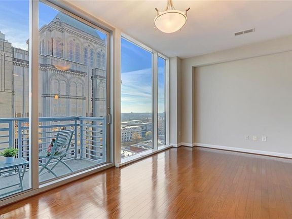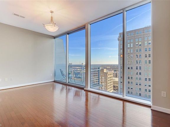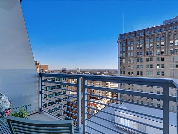 Sophisticated luxury condominium on the 11th floor of the Center Pointe complex! High ceilings and floor-to-ceiling panoramic views elevate the living experience of downtown life. The open kitchen with eat-in island, tile backsplash, and custom cabinetry flows into the spacious living area. Private balcony enjoys beautiful urban views. Primary bedroom is complete with built-in storage and a custom bath with tile work and granite vanity top. Enjoy elite building amenities including 24/7 security with around the clock secure building access, a covered parking garage, private fitness facility, concierge, and restaurant. Immediate proximity to the new Tanger Center for the Performing Arts, LeBauer Park and Center City Park!