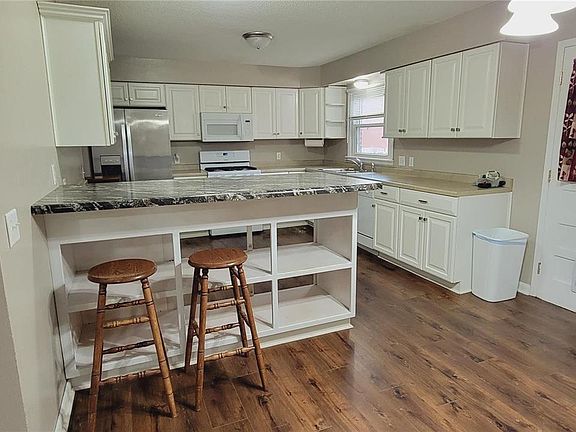 - Features: Floor Covering: Laminate, Wall Covering: None