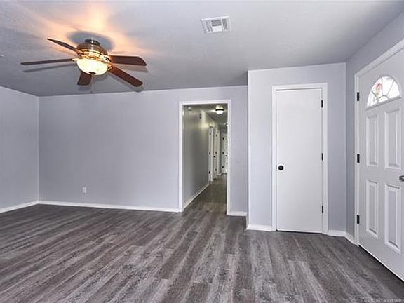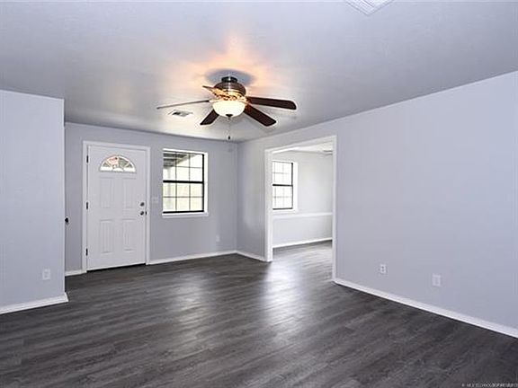 Back on market through no fault of the seller. Updated home is large for the area. Kitchen & baths. are fresh w/refaced cabinets & granite tops. kitchen with a pantry, SS stove & dishwasher. New carpet in bedrms & vinyl plank floor throughout. Nice closet space in bedrms, coat, & linen closets. Most hardware, light. fixtures, etc are updated. New exterior doors. New concrete porch & sidewalk, plus small deck in back. Yard is graded, sod & grass seed planted, guttering installed, sump pump installed.