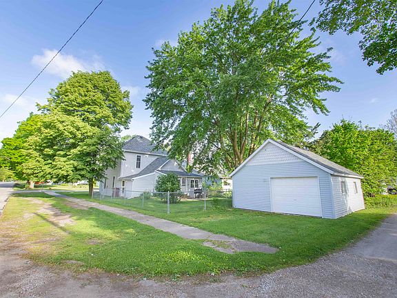 Nestled beneath a stately shade tree in the welcoming small town of Ashley, this beautifully updated Victorian home blends timeless charm with modern convenience. Step inside to a cozy sitting room just off the main entrance, leading into an expansive living space with tall ceilings that invites natural light and comfort. The heart of the home—its kitchen—has been fully updated within the past three years. Featuring new appliances, white cabinetry, and abundant can lighting including under-cabinet illumination, this bright and functional workspace is perfect for both everyday meals and entertaining. Enjoy the ease of main-level living with a spacious primary suite complete with a connected full bathroom and stand-up shower. A main-level laundry room adds convenience, offering a newer washer and dryer, a utility sink, and a glass slider door for easy access. Recent upgrades ensure peace of mind, including a brand-new roof with full tear-off, new sheeting, and gutters (2024), as well as a new gas furnace, central A/C system with reworked ducts, and a new water heater (just 2 months old). Dusk-to-dawn outdoor lighting enhances curb appeal and security. A separate side entrance welcomes you into a generous foyer and a bonus storage room—perfect for coats, gear, or seasonal décor. Step out back to a fenced yard complete with a deck, ideal for kids and pets to play safely. Upstairs, you’ll find two additional bedrooms, a full bathroom with a tub/shower combo, ample closet space, and a versatile flex room—perfect as a home office, playroom, craft space, or guest room. The partial unfinished basement houses the new furnace, a freshly installed sump pit and pump, and has been structurally reinforced with extra block and concrete for added stability. The detached 1.5-car garage features sturdy cinder block construction, a brand-new overhead door, and multiple built-in workbenches—perfect for hobbyists and storing yard equipment. Don’t miss this unique opportunity to own a lovingly updated Victorian with small-town charm and move-in ready peace of mind. Welcome home!