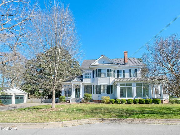 Nestled within the charming streets of Edenton, NC, stands a timeless masterpiece, exuding grace and elegance. Built in 1910, this distinguished home offers an opportunity to own a piece of Edenton's rich architectural heritage. This beautiful home is a Fred Muth design. Step through the inviting entrance and you will be captivated by the charm and character that defines this residence. Hardwoods, soaring ceilings, large windows flood the interiors with natural light, and updates are throughout. The main living boasts an array of spacious living areas, perfect for entertaining. Formal living room with fireplace, gracious dining room that sets the stage for memorable dinner parties, butler's pantry, den, beautiful sunporch, and amazing updated kitchen are located downstairs. Upstairs, the large primary boast an amazing, updated master bath that feels spa-like! Three additional bedrooms are located upstairs with a charming hall bathroom. Laundry room located on second floor with a back stairway that leads to the kitchen area. The third floor may be used as a playroom, man cave, craft room, or flex space. Additional attic space located on third floor! Two car garage, boat storage, and fenced in backyard with treehouse/playset. Walk to all local restaurants, shops, trolley tours, boat tours, and enjoy the waterfront just a few blocks away. Don't miss your chance to own a home in Historic Downtown Edenton - schedule your private showing today and discover the timeless elegance of this exquisite 1910 residence.