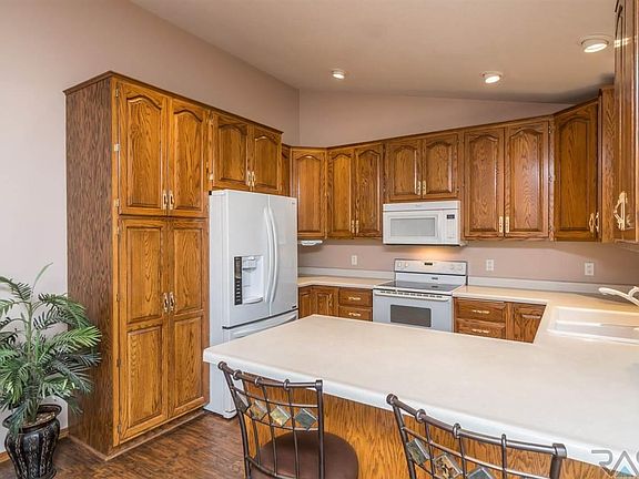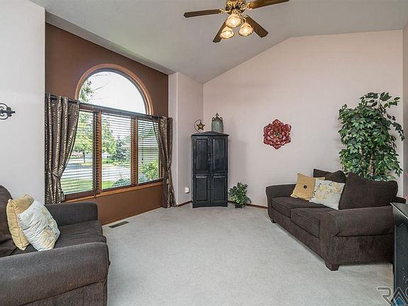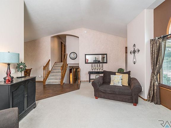 Spacious 5 Bedroom, 3 Bath, Walk-Out Home in Beautiful East Sioux Falls Neighborhood! Fabulous location offers quick and convenient access to shopping, entertainment, restaurants, schools, and parks. This home has so much to offer with 3 bedrooms on the upper level including the master suite with private bath and 2 double closets, walk-out lower level family room, soaring vaulted ceilings throughout the main floor, and over 2,400 finished square feet. Comfortable kitchen features a full depth pantry cabinet, convenient breakfast bar, and stunning laminate floors running into the dining room. Dining room walks out to the oversized 13'x13' composite backyard deck overlooking the ample backyard. Large main floor living room is highlighted by an arch top window and tall vaulted ceiling. Lower level family room showcases a cozy gas fireplace with wood surround and walks out to the backyard patio. The lower levels house 2 additional bedrooms, a 3rd bath, and a large unfinished storage area.