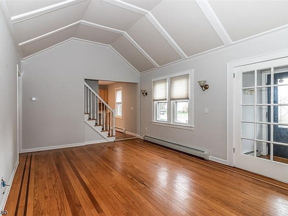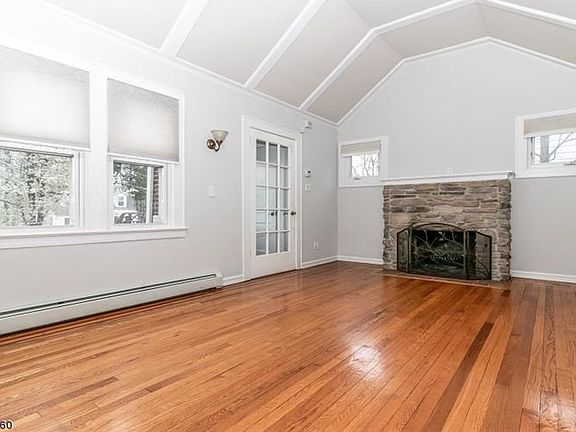 Sunny Spacious Cape on a professionally landscaped lot with a profusion of flowers and trees. First level Features Master bedroom, a full bath, modern updated kitchen, dining room, living room with W B fireplace and vaulted ceiling. Second level boasts a large bedroom plus an additional bedroom loft with abundant storage. Hardwood Floors throughout. The basement is fully finished with a family room, full bath, laundry room, utility room and a walkout to back patio. An over sized garage with an attached workshop plus a large patio and deep fully fenced lot complete this lovely home. Located just steps to Hillside Ave K-8 school, and moments to parks, town and NJ transit.
