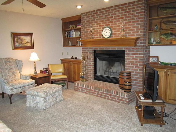 IMPRESSIVE! Custom built home has been meticulously maintained by the original owners. This all brick ranch sits on 1.75 pretty acres w/mature trees & backs to a pond. Kitchen offers a corner sink overlooking the backyard & is open to the eating area w/a bay window. The Family rm features a handsome wood burning fireplace w/built-in shelving on each side. Owners suite has private bath w/soaking tub plus walk-in-closet. Great screened-in porch perfect for those lazy mornings & evenings overlooks the peaceful surroundings. Huge basement has LOADS of potential. Extra big 2 car garage. Beautiful woodwork thru-out. New carpet in hall, fam rm, & bdrms (7/15). Great location sitting just on the edge of town and close to the Hartford Fairgrounds. VERY NICE! See A2A for more great info!!