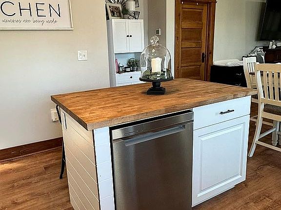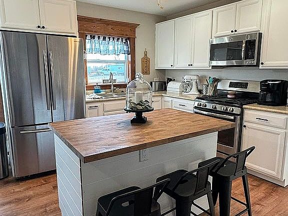 2 bed 1 bath 2-4 car detached garage Large mudroom & pantry area New life proof vinyl plank flooring New island with dish washer installed Seal plate recently spray foamed New windows Tankless water heater New furnace & air Heated flooring in bathroom Very efficient Large yard Chicken coop/dog pen Large garden area