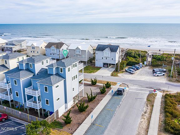 Enjoy the best 2nd row location on Topsail Island from this quality, custom built and fully furnished townhome, by one of the region's most highly acclaimed builders. Built in 2018, this end unit has additional windows that offer views of both the Atlantic Ocean and Intracoastal Waterway, and the 3 levels of decking design gives incredible viewing opportunities. Walk directly across a quiet, low-traffic street to the beach access, or casually stroll to the best of Topsail's restaurants, marina facilities, and shopping venues all within a block of your door. The home's interior boasts an open floorplan with walls of windows to bring in the views and natural light. Spacious kitchen features custom cabinetry, granite countertops, LVT flooring throughout, and state of the art appliances perfect for entertaining guests at the beach. The elevator provides easy access from the ground to the 1st and 2nd levels of the home. Interior freshly painted top to bottom in January 2024.