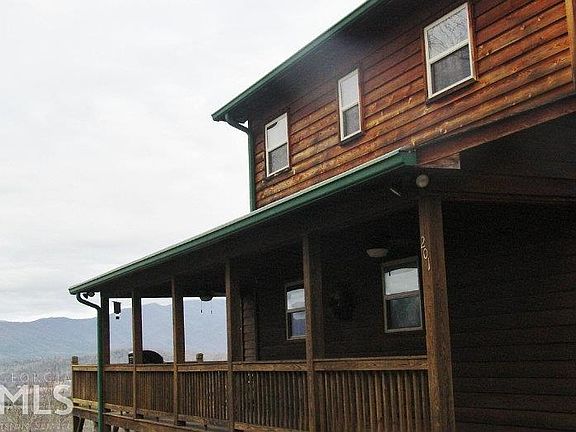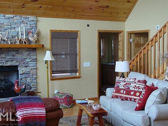 Spell-binding long-range views of Tusquittee Bald mountains from custom cabin-styled home. Living Room has vaulted pine ceilings, dry stacked stone fireplace, and oak hardwood floors. Solid oak baseboards and doors. Kitchen has all stainless appliances, custom tile work, granite and solid oak cabinets. Small open loft area for office, large game room with two additional finished rooms to use as you wish. Pool table and outdoor spa under covered porch stay with property. All living on Main Level with two stories of open and covered decking. Level-entry garage into laundry room. Furnishing may be purchased outside of contract with only a few exceptions. Ideal for full-time living or great second home. Chicken coop included. This home will not disappoint.