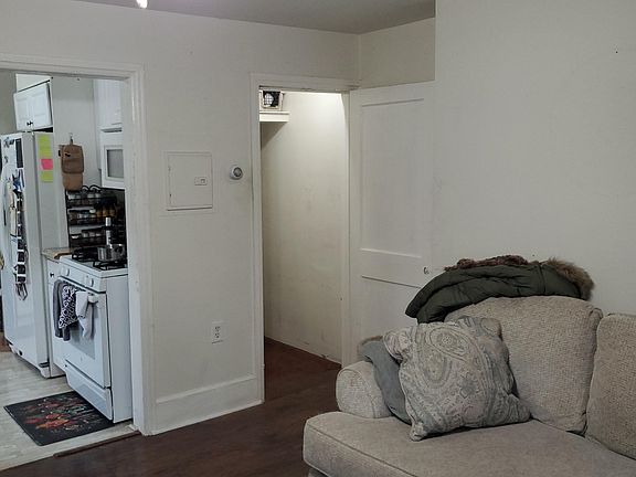 SHOWING NOW: Two floor townhouse style apartment in Victorian style smaller apartment building. Available for February 1st move-in date (or sooner). One year lease. First, last, and security. Close to everything, central location! Private entry in the back of the building. First Floor is the kitchen; and large living room with huge closet. Second floor is bedroom, plenty of closet space, and FULL bathroom, and storage area. Includes FREE parking for one car/truck in our parking lot. Utilities not included. Plenty of on street parking as well. One year lease, then month to month, with annual lease as an option to renew. One car/truck spot available in parking lot on property included. Heat & electric is separate, not included.