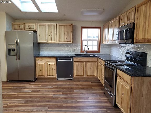 Manufactured home on it's own lot in Sheridan outside the flood plain (see LOMA)! 3 bedrooms, 2 baths, remodeled kitchen with hickory cabinetry, SS appliances, both bathrooms remodeled, hall bath with stand up shower and primary bath with Jacuzzi tub! Inside laundry room, vaulted ceilings, pellet stove in the great room, covered front deck, tool shed, 2 car garage and graveled parking for additional parking or easy maintenance yard. Priced to sell!