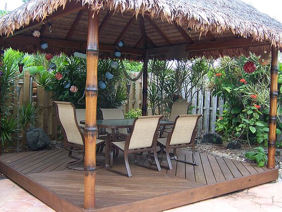Updated 3/2 plus den pool home just 1 block from the beach. Walking distance to shops too. Kitchen re-done with granite, tumble marble, new a/c; updated master bathroom. Open floor plan; hurricane windows; knock down ceilings; high hats; crown molding; new paddel fans; fixtures; surround sound; open pool with tropical landscape; brand new bamboo style tiki hut; outdoor shower and over 2,600 sq. ft. of living space.