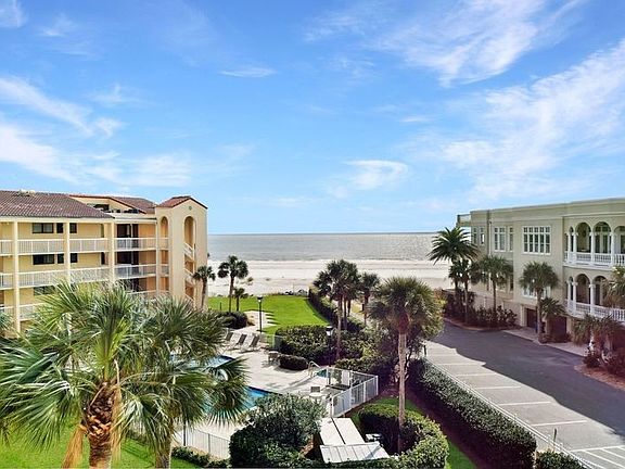 Located in the South Villas of the King and Prince historic resort --- OCEAN VIEWS from this fourth floor, 2 bedroom/ 2 bathroom condo. Overlooking the south villa swimming pool and just a short walk to the beach. Sliding glass doors off of the living room and primary bedroom that open up to a balcony with ocean and pool views. Wonderful opportunity to have an investment property on the beach or enjoy as a second home! One assigned covered parking space, an owner's storage closet for beach chairs, and gated access. Dine at the onsite restaurant or walk one block to several of the best dining options on St Simons Island!