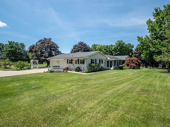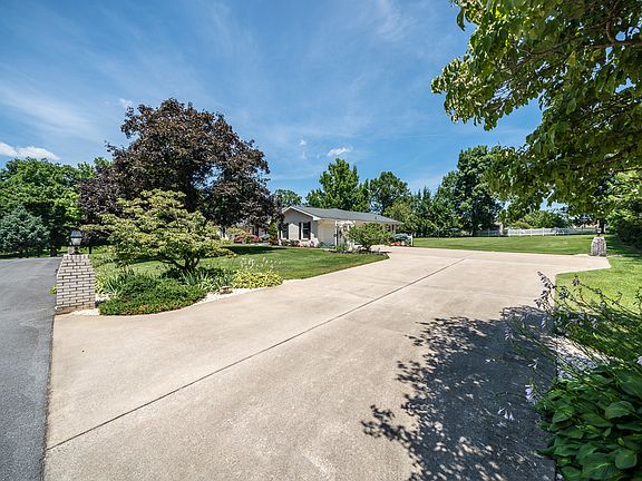 Stunning Farmette is a hidden gem. Settled on 4.81 acres you will have plenty of space for horses, vehicles and many other hobbies. 30x40 barn with 17x29 overhang offers 2 stables, tack room, electric, running water and concrete floors. In additional is a 12x36 shed and a 8x12 for supplies and dry storage. Sprawling custom built, all brick, Ranch style home has over 3700 sq ft of finished living space. 4 bedrooms, 2 1/2 bath. 2 natural stone fireplaces. Custom brick arch enhances the spacious cherry kitchen. New laminate flooring throughout the entire home. Sunroom leads to a fully fenced back yard. Office with custom built-ins has private side driveway entrance. Convenient 1st floor laundry. The home has a main level over sized 2 car garage and lower level attached 5 car garage with an attached 5 car carport. This property is truly a must see to appreciate all is has to offer.