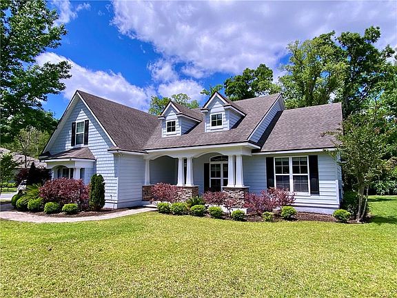 This gorgeous custom 4 bedroom home is located in a beautiful gated golf community. Open floor plan is perfect for entertaining and has lovely hardwood floors throughout the living/dining areas. The kitchen has a gas range and island and overlooks the great room, breakfast room and the private backyard. The adjoining formal dining room has attractive wainscoting. Vaulted ceilings, a fireplace, wet bar and lots of windows gives a large open feel to the great room. The large master suite has vaulted ceilings, two closets, separate tub/shower, double vanities and offers access to outside. Two other bedrooms share a bath on the main floor with the 4th bedroom and its bath upstairs. Home is conveniently located to beaches and Jacksonville Int'l Airport.