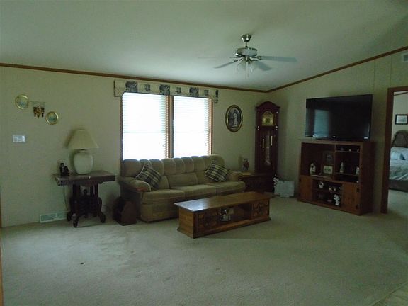 Take a look at this nice 3 bedroom, 2 bath manufactured home within city limits of Loogootee. Open floor plan with upgrades including roof pitch, energy efficient windows, kitchen cabinets, concrete crawl space, and walk-in closets in all bedrooms. Includes appliances and 1 car attached garage, new covered back deck. Ready to move in and priced to sell.