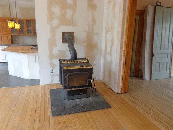MOTIVATED SELLER! MAKE AN OFFER! Are you looking for a house you like or one you can fall in love with? This bow front Victorian has beautiful bones and attention to detail that few other houses on the market possess. When you walk inside, you will see what the artisan builders of the past were capable of. Three full sets of pocket doors divide the first floor for privacy but open up for the open concept that many of today's potential homeowners are seeking. The high ceilings and enormous windows create a spacious atmosphere and let in plenty of light. The house was constructed perfectly to take advantage of the environment it was built in. In the summer the house is cool and tall windows allow for plenty of cross breezes off the lake. In the winter, the large picture windows let in plenty of sunlight and the house is warm and bright. This house is tight and strong with real old fashioned 2x4's and beams made out of the prized timber Michigan was once known for. This same ancient timber was used in all of the woodwork, which is still in the home. Golden glowing pine and hardwoods were used to fashion the floors and trim. Intricate brass hinges and doorknobs provide interest and detail. There is an arch on the first landing that leads to a small charming space with a built-in bench to sit on and look out the window or take off your shoes. Even the walk-in basement features window and door trim. The renovation on the house was started in 2010 and has not been completed. A beautiful modern kitchen has been added to the first floor and is almost complete. It features pendant and recessed lighting on dimmers. The kitchen and butler's pantry have new ceramic tile floors. The kitchen cabinets are wired for under cabinet lighting and have appliance garages, pan drawers, hidden trash cans, and easy glide self-closing drawers. The convection range has five burners and the duct work in in place for a range hood. There is a custom built peninsula that echos the shape of the bow front windows in the adjoining dining room and is just waiting for the right piece of granite to complete it. The second and third floor have been "demoed" and walls and stairways have been added, but little else. Most of it needs to be plumbed and wired. You could choose any fixtures and finishes that appeal to you without having to go through the mess and labor involved in the removal of the old material. A large master suite has been roughed out, with a walk-in closet that flows into a dressing room or private office. The "en suite" space has room for a steam shower or second walk in closet and a water closet which opens into a laundry room. Across the hall is a guest suite which has been wired and roughed in and has a view of the lake . The guest suite bathroom still has the old plumbing in place for the toilet, sink, and shower, but all fixtures were removed to accomodate the new floor plan. Stairs lead to the third floor which can be anything you want it to be.There is plenty of room for two more bedrooms or you could use it as a wonderful open living space. Some of the windows have been covered with siding but they reveal amazing views of sunsets over Lake Bancroft in the winter and the summer. The floor plan makes this house a perfect candidate to be turned into a duplex since it features two separate doors on different streets, each of which opens onto a stairwell onto the second floor. This house is a work in progress, but the right person could have their investment of time and energy pay off with a home they will never want to leave. Only part of the house has been rewired and plumbed. All of the baseboards have been removed to allow for new drywall and to facilitate the refinishing of the floors, but are marked and ready to re-install. The current owner and her family spent three winters living in the house and were comfortable with the wood stove that is on the property, but a modern central heating system is needed.