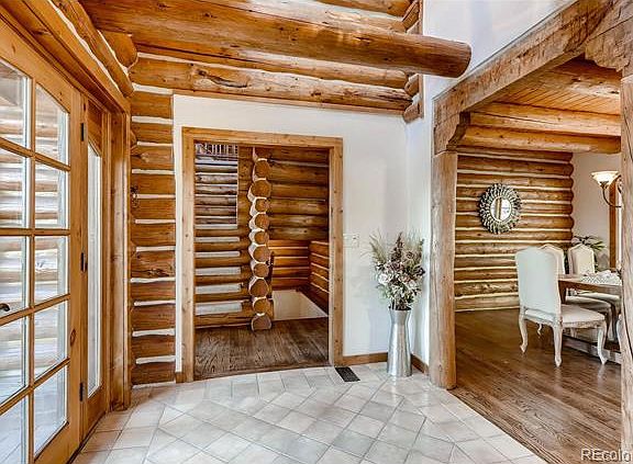 You have to see it to believe it*Luxury Mt. Log Cabin in the city*Highly sought after Plum Creek Golf Course community*This log and timber home is nestled on a half acre lot with panoramic Mt. vistas from every corner with expansive walls of windows and wrap around decks*The open floor plan that includes a massive great room with a stone fireplace, expansive 30 ft beamed ceilings, newer hardwood flrs and plantation shutters. The lrg formal dining room is open to the gourmet kitchen w/slab granite, prep space for any family, double ovens, newer refrigerator, pantry space and an entertaining island. The master suite is truly an oasis with dual closets, large private sundeck, 5 piece bath including soaking tub and large glass shower.. The floating log staircase up leads to 2 nicely appointed bedrooms and a storage/playroom bonus in the guest closet area. The basement features a party/rec room, 2nd master & 426 bottle wine cellar w in-ground safe, functional mud room.