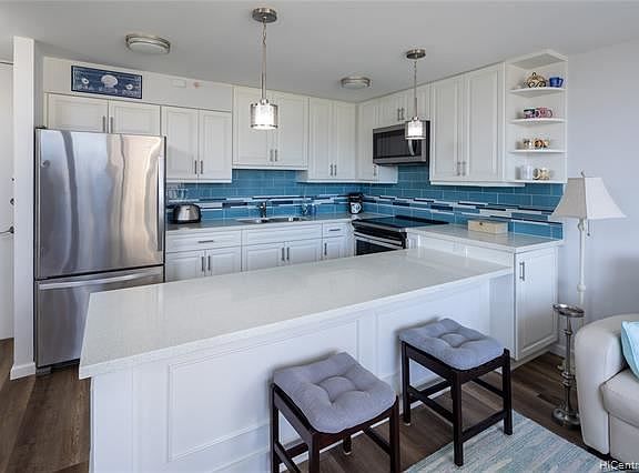 Your home in Waikiki awaits! Primary, Second Home or Investment/Vacation Rental opportunity. Completely Renovated with amazing custom details - Walk in Closet, High-end Kitchen & Bathroom - quartzite counters, quality cabinets and luxury vinyl flooring throughout are just the beginning. An extra creative design with a top of the line Murphy Bed and mattress that converts the bedroom to a more flexible and useable space. You'll be amazed at the quality of this Waikiki Banyan unit that features Ocean and Diamond Head views. Popular building near the Honolulu Zoo end of Waikiki and Pet Friendly.