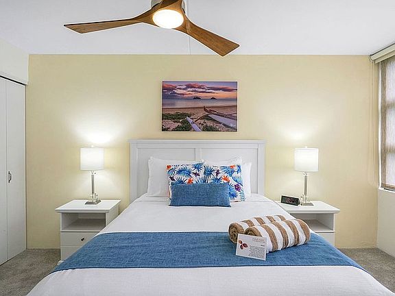 The most desirable Low Floor unit you've been waiting for! Completely renovated, fully furnished and "Washer & Dryer" in unit (only allowed in 6th floor units at the Waikiki Banyan). Enjoy access directly off your lanai to the recreation deck-the quieter end away from the pool & not in direct line of guest traffic. There are more amazing special features to share-Dual bathroom entrance for guest convenience, step in shower, quartz counters, hardwood cabinets, ceramic tile flooring, carpeted bedroom, block out blinds & sun filter blinds in the bedroom. Don't miss out on this highly desirable, pet friendly building.