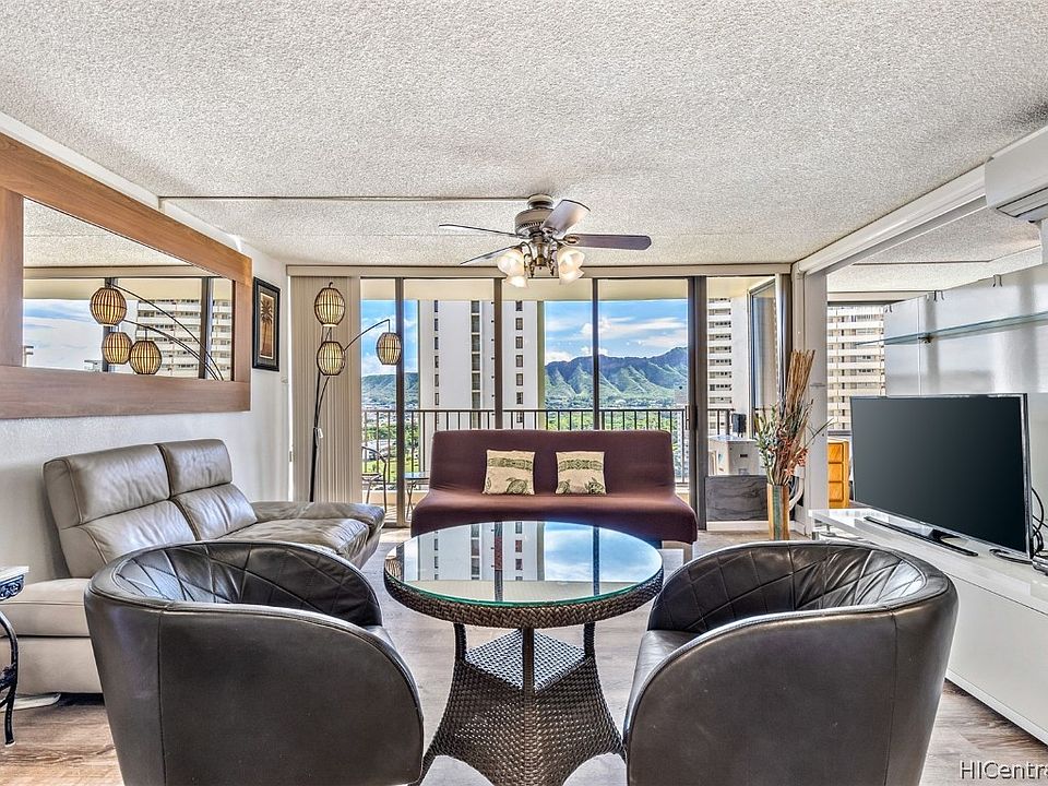 Welcome to this newer updated large open 1bedroom unit with a flexible layout. The entire unit has been updated throughout the years, flooring, kitchen, bathroom, split system AC. Enjoy views of diamond head and city while relaxing in cool comfortable home with split system AC. The resort features a huge recreation deck with a BBQ area, large seating areas for gatherings, a half basketball court/full tennis court, a playground area, an outdoor pool, a sauna and two Jacuzzies. Waikiki Banyan is situated at the east of Waikiki within a short distance to world-famous Waikiki Beach, Kapiolani Park, restaurants and shops. Pet friendly! HOA fees include all utilities and the unit comes with one unassigned parking space. Storage lockers are available on a waiting list.
