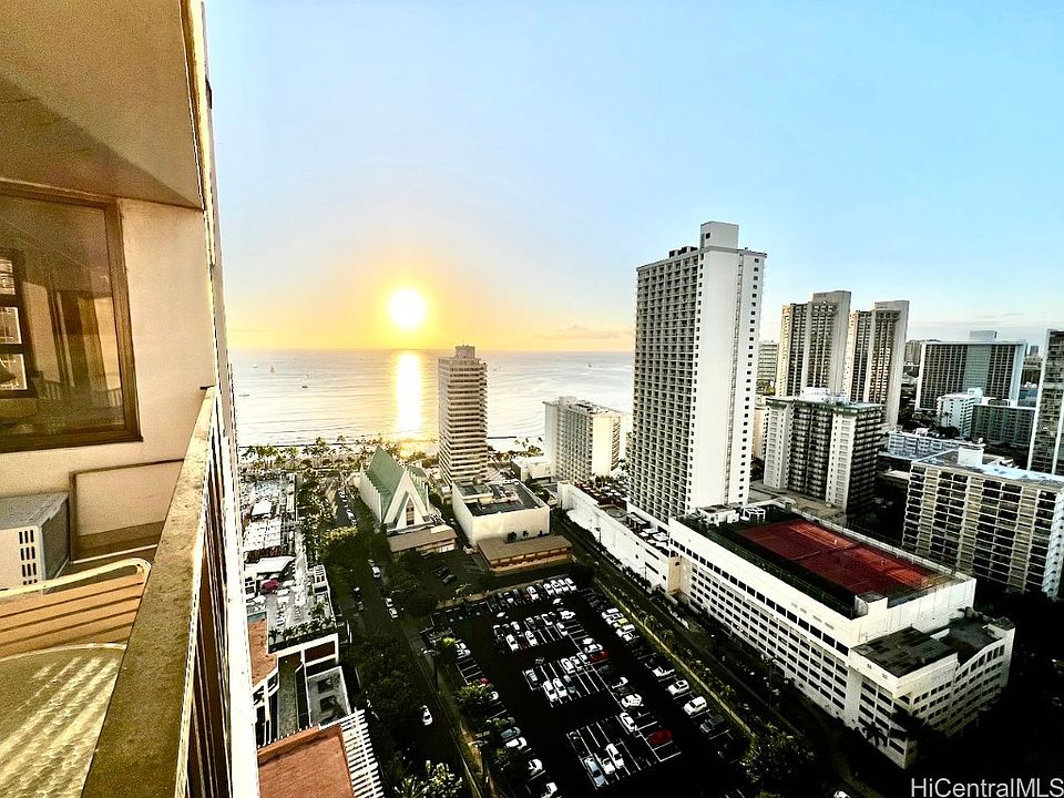 RARELY AVAILABLE TOWER I 30TH FLOOR MAKAI END UNIT!! One of the largest units in the building with 594sqft of living space! Beautiful sunlight coming in through the windows in the kitchen, living room, bathroom, and huge windows on 3 sides of the bedroom!! Magnificent breathtaking view of Waikiki, coastline, mountains and sunset. Great Investment and Income producing vacation rental unit in highly sought after condo-hotel in Waikiki. Completely furnished and ready to go. Well maintained building with beautiful lobby waterfall features by the entrance, huge recreation deck with pool, BBQ area, playground and jacuzzi on 6th Floor. Please submit your offers!