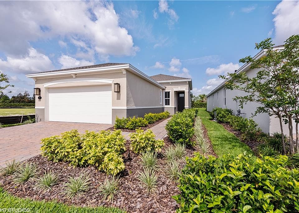 Open, Great Room floorplan with 2 Bedrooms and 2 full Baths. Island Kitchen features white cabinetry with crown molding, and quartz countertops. Owner's Suite offers two Walk-In Closets and french doors that open to en Suite Bath with large shower and split vanities. Home also features Den, ideal for hobby room or home office, and secondary Bedroom with hall Bath. Covered Lanai completes the outdoor living space.