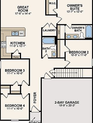 1402-B NEW single-story home with 2-car garage! Inside is a spacious kitchen which looks out to the living room. The owner's suite features a private bathroom and walk in closet. Additionally, are 3 more bedrooms and another full bath! Photos are of a model home photo or artist rendering due to construction stage.