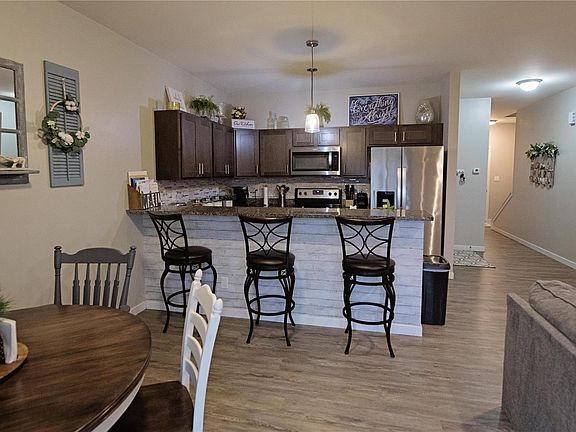 3 bedrooms, 3 full bathrooms and 1 half bath townhome with 1 car garage with bonus concrete pad for extra parking. With garage and driveway there is enough space for 5 cars. Lots of living space. Open floor plan on the main floor with large living room, breakfast room and spacious kitchen. Gorgeous kitchen with stainless appliances and granite countertops. Half bathroom on the main floor. 2nd floor has large owner's suite with deep walk in closet and full bathroom. 2nd bedroom upstairs has deep walk in closet also, and full bathroom. Efficient landing space on 2nd floor perfect for office/desk space or flex space. The lower level is finished with 3rd bedroom with egress, full bath, walk in closet and storage space. This property is nicely appointed with stone and vinyl accents on the exterior, and it's located at the end of a court without a neighbor immediately behind. Lots of bonus features and underground pet fence. No monthly maintenance fee or hoa fee with this townhome.
