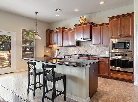 • Kitchen: Breakfast Bar, Open to Family Room, Breakfast Area, Center Island, Granite/Marble Counters