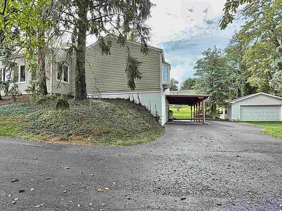NICELY CARED FOR RANCH HOME ON .33 ACRE LOT FEATURES 3 BEDROOMS, EAT-IN KITCHEN W/PANTRY, SUNKEN FORMAL DINING ROOM W/WOOD STOVE, 21X16 SUNROOM, LIVING ROOM W/FIREPLACE, FINISHED LOWER LEVEL INCLUDES FAMILY ROOM W/GAS FIREPLACE, OFFICE & LAUNDRY ROOM WITH UNFINISHED SPACE FOR STORAGE, REPLACEMENT WINDOWS, VINYL SIDING, UPDATED OIL FURNACE, CENTRAL AIR, 2-CAR DETACHED GARAGE BEHIND HOME, COVERED BACK PORCH/PATIO COULD BE USED AS CARPORT, SHARED DRIVEWAY. THIS IS AN ESTATE SALE WITH HOME BEING SOLD "AS IS".