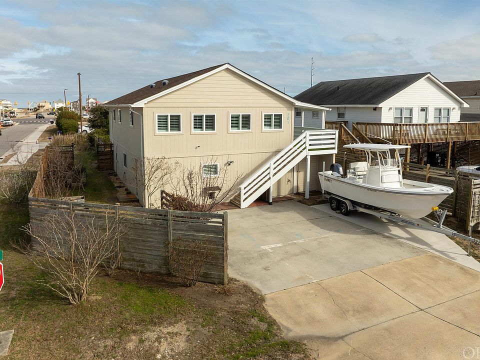 Welcome to 201 Orville Court: your slice of paradise in the Outer Banks!  Where coastal charm meets modern convenience in this impeccably updated beach home. Prepare to be amazed as you step inside this unique property, which offers not just one, but two homes for the price of one! Coastal chic design all throughout. As you enter, you'll be greeted by a spacious welcome center, perfect for dropping off your beach gear after a day of sun and surf. The open floor plan boasts a modern kitchen overlooking a generous dining and living area, all tastefully updated to perfection.  Get ready to entertain with ease thanks to the Sonos surround sound and subwoofer system, creating the perfect ambiance for gatherings with family and friends. Whether it's a cozy movie night or a lively dinner party, this home has it all. Two Homes in One: The main house features three bedrooms and two full bathrooms, beautifully furnished and decorated to perfection. Simply move right in and start enjoying coastal living at its finest. Plus, with a completely separate entrance, the additional 722 square foot bonus space serves as a versatile guest retreat, complete with its own kitchen, living room, bathroom, and flex space.  Step outside to discover your own private retreat, nestled on a corner lot with lush landscaping and fencing for added privacy. Enjoy the fruits of your own backyard with peach and apple trees, creating a serene backdrop for outdoor relaxation.  Conveniently situated in the Wright's Shores neighborhood, this home grants you access to sound and beach access reserved for owners and renters. Plus, with the brand new Target just across the street and a plethora of shopping and dining options nearby, everything you need is right at your fingertips. Whether you're seeking a permanent residence, a vacation getaway, or an investment opportunity, this property has it all. With its unbeatable location, dual living spaces, and endless amenities, this is your chance to own your dream beach house in the Outer Banks. X flood zone!