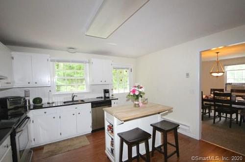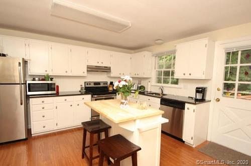 Terrific house, set on level .72 Acre on private road. Renovated eat in kitchen 2014. Open floor plan with large rooms. Large deck, patio and large yard. Very popular Cul De Sac. Great opportunity. Close to shopping, public transportation, walk to houses of worship and schools. Only 5 minute drive to Downtown Stamford. Pets will be considered. Case by case basis.