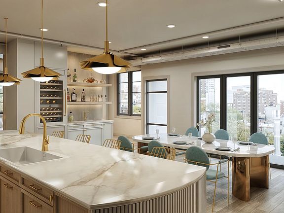 Set on a premier corner of downtown Park Avenue, Magnolia House comprises two grand duplexes created for buyers with high expectations. Developed by John Heidenry, of Red Bridge Homes, both of these unrivaled luxury homes are designed by D&G Interiors +Design. This imposing duplex that spans over 3,800 sf, on the top two floors, features a stunning separate living/dining area with a curved wall of south-facing windows, gourmet kitchen with custom cabinetry, quartz island, marble backsplash/countertops and pantry, either 4 or 5 bedrooms, a family room and 4 full baths. The spacious living area provides southern light throughout the day and a fireplace for cold winter nights. The exquisite primary bedroom, also with wraparound windows, has two deluxe walk in-closets and a luxurious ensuite bath, a spa-like oasis with a full slab porcelain shower, quartz soaking tub, Kohler steam machine, electric Toto Neorest toilet, on demand heater and Kohler fixtures. All additional baths offer electric Neorest wall hung toilets, marble tiling and on demand heaters. Large NanaWall bifold door opens from the dining area leading to a private outdoor balcony. The duplex is crowned with a 650 sf private roof deck, complete with BBQ, refrigerator, sink, outdoor TV and views of the New York City skyline. Magnolia House has it all: steel and concrete construction, full-size elevator opening directly into your home, wide-plank wood flooring with brass inlay, Sub-Zero 48” smart refrigerator, Wolf 60” dual-fuel 8-burner range with double ovens, Sub-Zero 24” wine chiller, Miele dishwasher, Wolf microwave, built-in coffee maker, and a wet bar with ice maker. All additional baths offer electric Neorest wall hung toilets and on demand heaters. Other amenities unique to this home include dual Carrier HVAC systems with Infinity air purifier (kills Corona and Flu virus), RenewAire EV Premium fresh air ERV unit, Aquasana full-house water conditioner and filtration system, central vacuum, dual set of Samsung front-load laundry units, triple-glazed Intus windows from Europe, two-zone heat and AC, on-demand hot water, ButterFlyMX intercom system, large home safe, sidewalk snow-melting system, Nest security cameras and a large, private storage room on the ground floor. The Magnolia House is conveniently located close to the PATH, NYC buses, shopping and Hoboken’s nightlife. Prepaid parking nearby provided for 3 years.