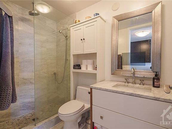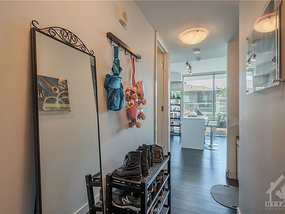 Welcome to this luxurious Soho Parkdale, 1 Bed, 1 Bath apartment in Mechanicsville. Enjoy urban living at it's finest with this contemporary and stylish unit. With a beautifully designed floor plan, and equipped with high end finishes, this unit has it all. The kitchen features premium appliances, stone countertops, tons of cabinet space, and center island with seating. Well sized bedroom with generous closet space. Full in unit laundry. Bathroom features marble tiled, stone countertop, glass shower. The comfortable computer nook is perfect for working from home. The bright main living space extends outside onto a huge personal terrace. Short walk to public transit hub with LRT access to Downtown Ottawa & Parliament, nearby restaurants, shopping, and so much more! Building features loads of amenities including fitness center, movie theatre, roof top terrace with BBQ and hot tub. One underground parking space and storage locker included.