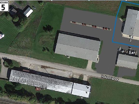 Industrial zoned 18,000 sq ft bldg ,Current use injection molding with full tool room,Ceilings are 20 ft ,24 to peak, four heated semi-truck bays with 4 loading docks 24 feet 28 peaks, tool room 1200 sq ft ,also 1200 sq ft mezzanine above suitable for office partitions , similar store area above Restrooms,Building features Kitchen ,Laundry and Bay racks, Access to IN SR 5 and railroad.