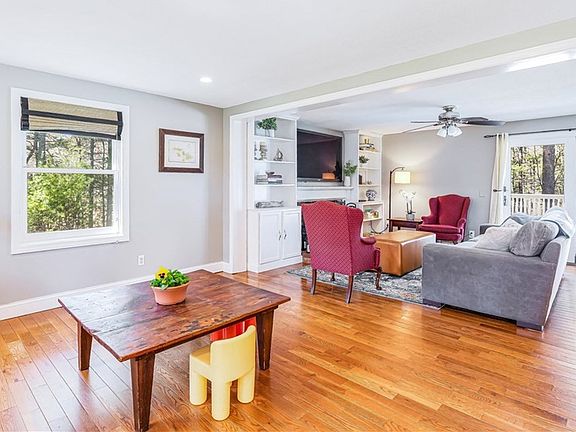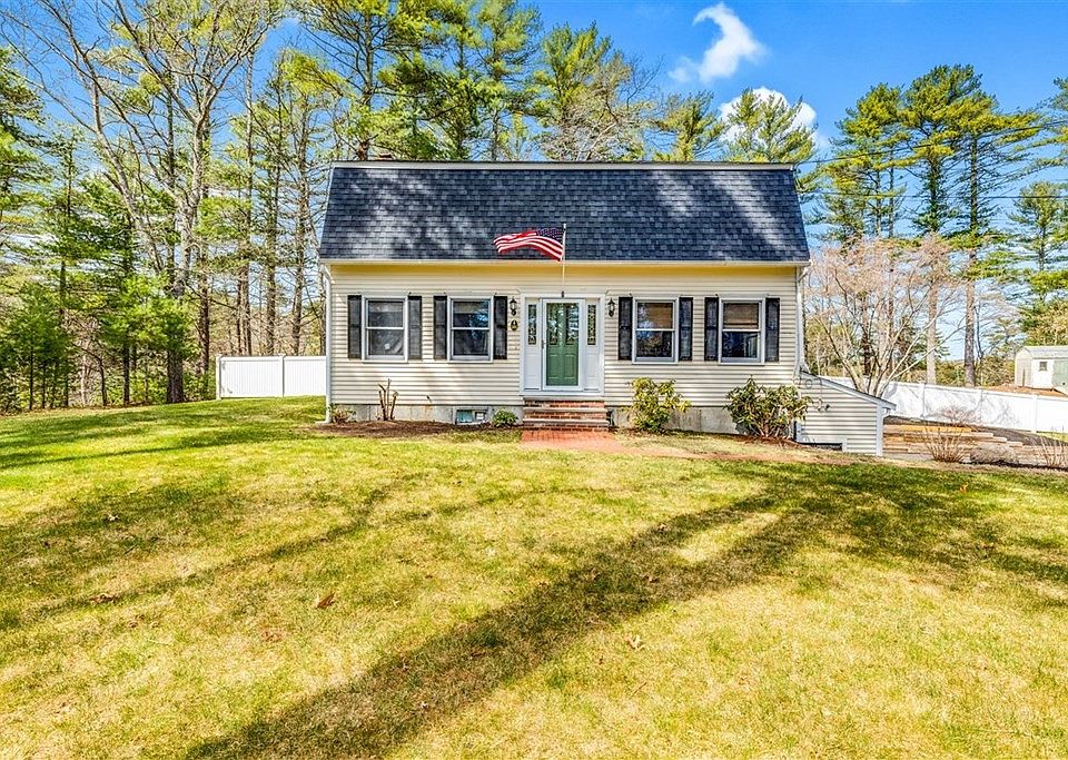 Driving down a quaint country road you'll come across this charming Gambrel home. Set back off the road on almost an acre lot, providing plenty of room to sprawl. The long driveway will certainly accommodate your visitors with ease. Once inside, you are greeted by a warm and inviting living room with custom built in cabinetry, a wood burning fireplace and a large screen TV, which stays with the property. Down the hall, you'll find an updated guest bath and a beautiful kitchen flooded with natural light, lots of cabinets including a center island. The large dining room across from the kitchen is a great space to entertain family and friends. Upstairs you'll find 3 bedrooms with wood flooring, including the master bedroom which offers an office area and 2 closets. Also on this level is a large updated bath. The partially finished basement is a great space for play with access to the 2 car garage! The expansive deck and fenced yard are simply delightful! Showings begin at the open house.
